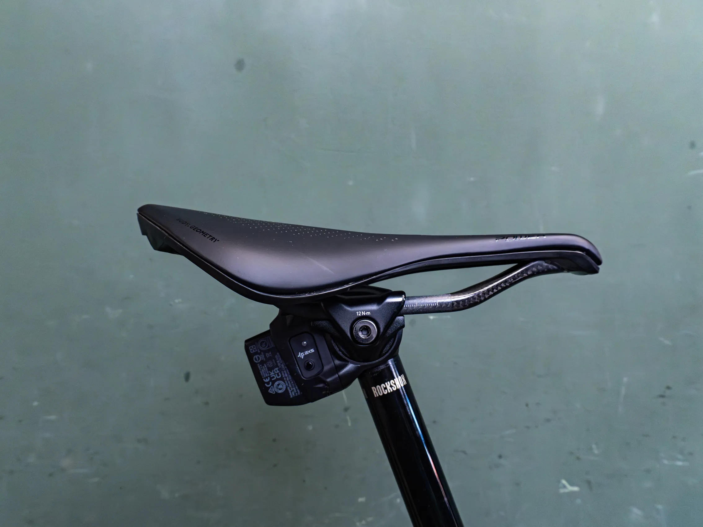– Body Geometry S-Works Power, carbon fiber rails, carbon fiber base